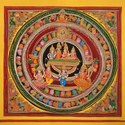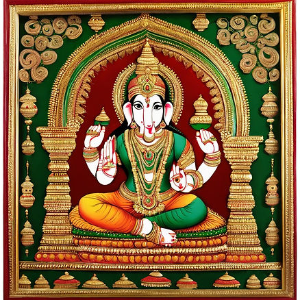 Tanjore painting, originating in the southern state of Tamil Nadu, is a unique and highly decorative style of traditional Indian painting. Characterized by its rich colors, intricate gold leaf embellishments, and three-dimensional relief work, Tanjore paintings often depicted Hindu deities, mythological scenes, and religious iconography. Artists used a combination of natural pigments, semiprecious stones, and gold foil to create lavish and ornate works of art that exuded a sense of divine beauty and spirituality.