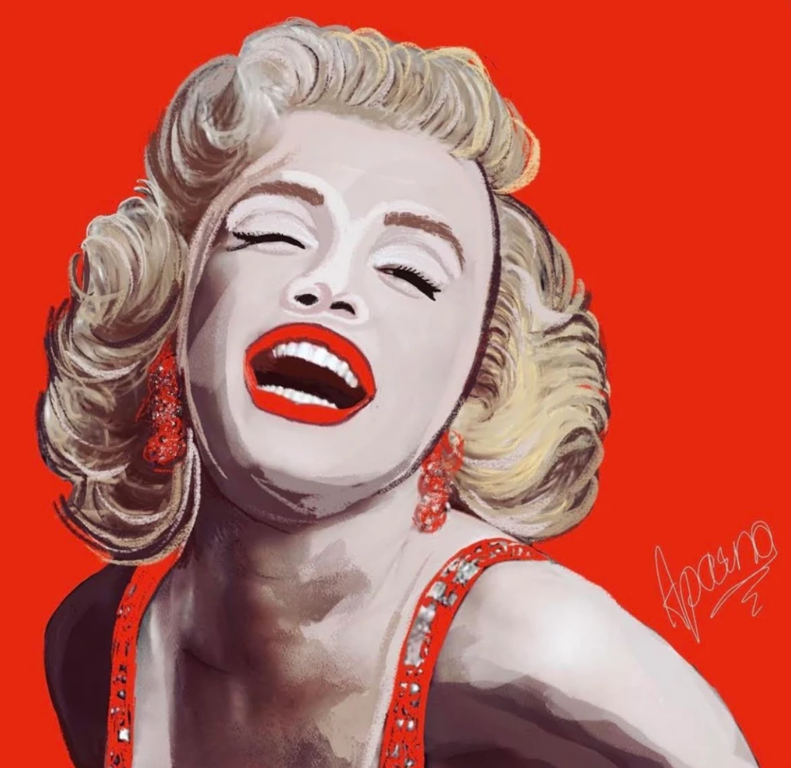 This captivating digital painting titled “Monroe” brilliantly captures the iconic charm of Marilyn Monroe. Set against a vivid red backdrop, the artwork highlights her signature features: glamorous blonde curls, radiant smile, and striking red lips. The bold use of color and meticulous detailing celebrate her timeless allure, blending classic Hollywood elegance with a contemporary digital art aesthetic. The artist’s signature further personalizes this homage to a cultural icon, showcasing the seamless merging of artistry and admiration.